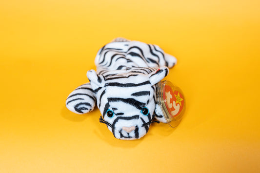 Blizzard (White Tiger, Cat) - TY Beanie Babies - PVC Pellets - Tag in Protector - Excellent Condition